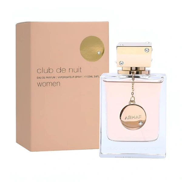 ادو پرفیوم آرماف کلاب د نویت زنانه - Armaf Club de Nuit woman عطری با سایز 105 میل با طبع ملایم و شیرین و گروه بویایی گلی میوه ای مناسب تمام فصول با ماندگاری و پراکندگی بسیار خوب که در سال ۲۰۱۵ به بازار عطر و ادکلن عرضه شد که رایحه اولیه آن ترنج، گریپ فروت، هلو و نارنج و رایحه میانی گل شمعدانی، یاسمن، هسته میوهجات و گل سرخ و همچنین نت پایانی آن مشک، نعناع هندی، وانیل و خس خس می باشد.